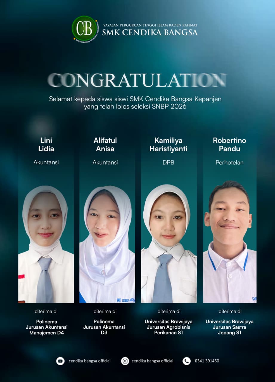 • Prestasi Membanggakan Siswa SMK Cendika Bangsa Lolos SNBP 2026